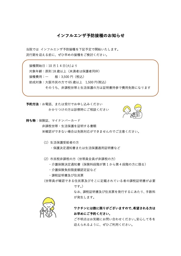 流行期を迎える前に、ぜひ早めの接種をご検討ください。